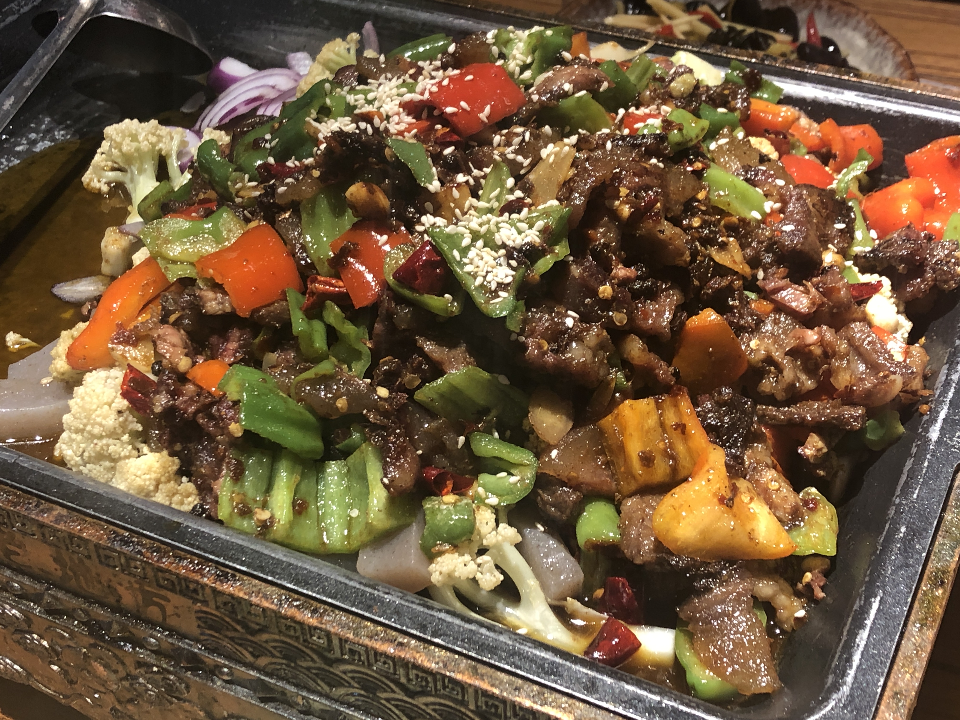 这是一锅牛肉,看上去很豪华,其实牛肉并不多...大多数都是魔芋。这个魔芋和平时吃的魔芋也不太一样,它是一咬就碎掉,平时吃的还有点弹性。